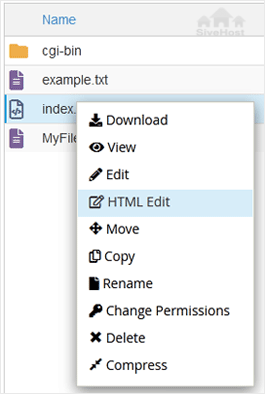 4. Right-click on the file. Then click on Edit or HTML Edit in the Context Menu.
