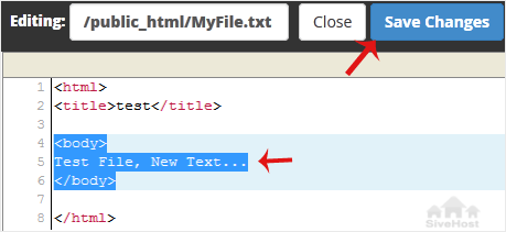 6. Make changes to the file and then click on Save Changes.
