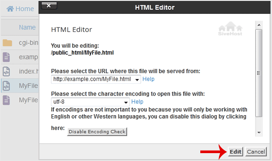 5. In the HTML Editor window, click on Edit.