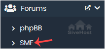 4. On the left side, locate the Forums category. Click on it and then on the SMF link that appears.