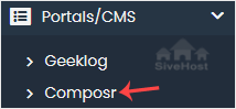 4. On the left side, locate the Portal/CMS category. Click on it and then on the Composr link that appears.